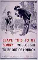 British kids looking up from a trench at German bombers.
